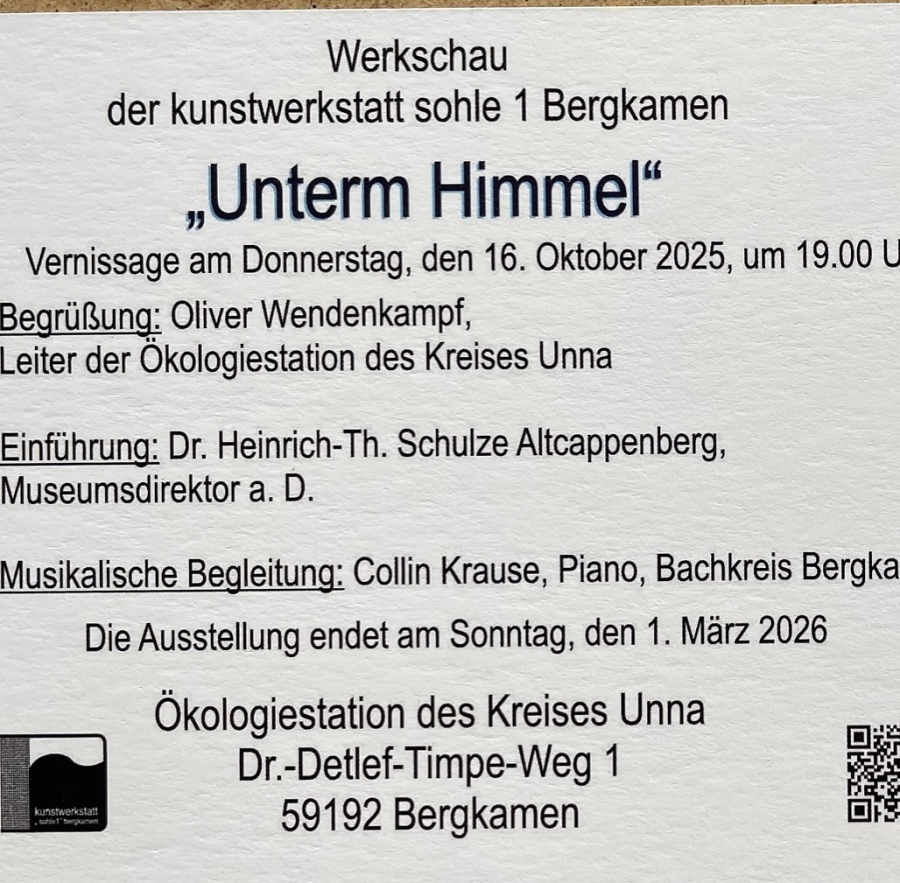 Die neue Ausstellung der Kunstwerkstatt Sohle I, woran ich mich auch beteilige.